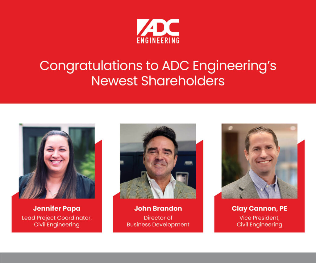 ADC Engineering is pleased to announce that Jennifer Papa, John Brandon, and Clay Cannon, PE have been named the firm’s newest shareholders, marking an important milestone in the company’s continued…